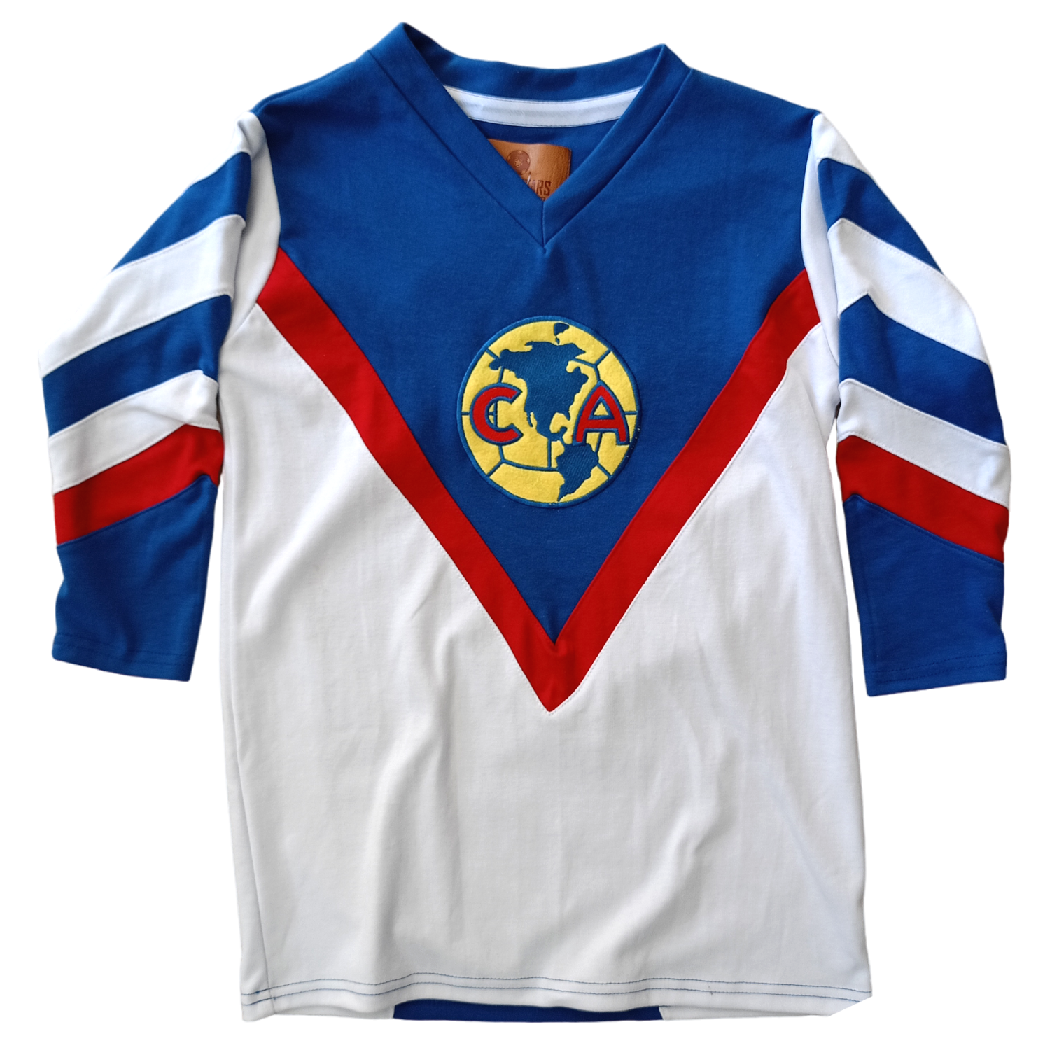 Jersey Retro Club América 1983 Blanca/Azul/Roja (Manga 3/4) – El corazón de las Águilas en su máxima expresión 💙❤️💛🦅